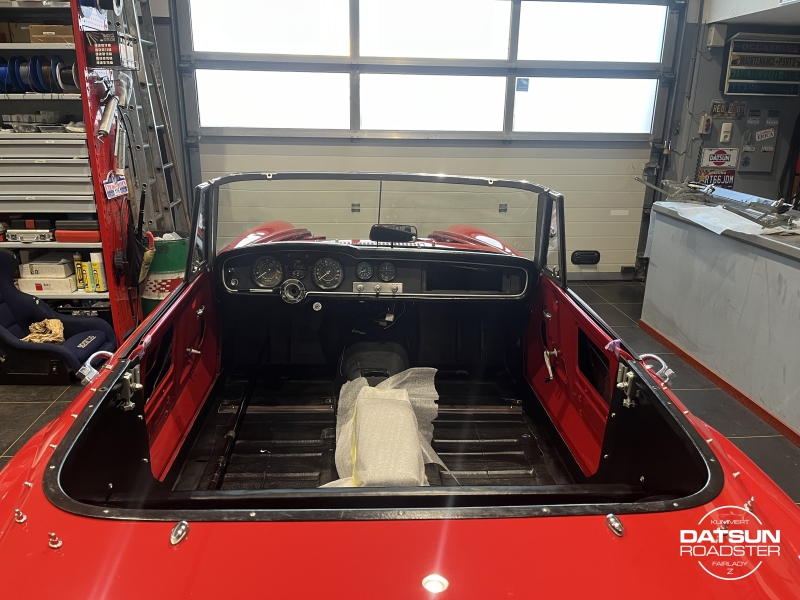 Het cabriodak is geïnstalleerd en de stoelen met hoofdsteunen zijn hersteld en voorzien van nieuw foam en vinyl bij de cabrio specialist.